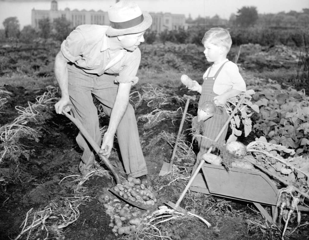 Og det var egentlig det jeg ville skrive om. Frognerparken. Under krigen. De dyrket poteter på plenene. Parkpoteteter kalte de potetene som ble dyrket i byenes parker, på fotballbaner, på et lite stykke ledig jord, under krigen. Victory Gardens ble lappene kalt i Amerika og England der det virkelig ble oppmuntret til at folket skulle ta spaden i egen hånd.
