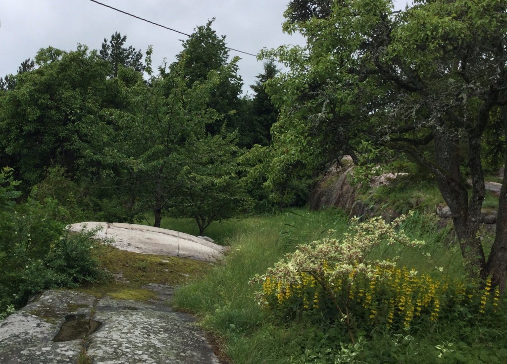 2017. Juni. Et rivningsmodent hus, men hagen. Selv etter 20 år uten stell var den et eventyr. Lå i le mot nord og vest og øst. Åpen mot syd, sundet og en ubrukelig brygge. Berget som lukket ute kalde vinder fikk den til å minne om England, Walled gardens, og boka jeg leste så mange ganger om en av dem, Den hemmelige hagen. Nøkkelen og hun som åpnet den. Fjorten eldgamle pæretrær, epler, plommer, kirsebær, rips og solbær. Bjørnebær og villvin som hadde hatt som de ville. I 20 år. Noen roser, de fleste av dem overtatt av villskudd fra rota. Dagliljer. Peoner. Brønn. Egen brønn full av vann. Og skog. Eiketrær. Einer. Villroser og kaprifol. Takløk. Fagerfredløs. Sankt Johannes urt. Humleblom. Fioler. Anemoner. Iris. Liljekonvall og perleblomster over alt. Naboene kom og sa at folk kalte den Den Hemmelige Hagen.
