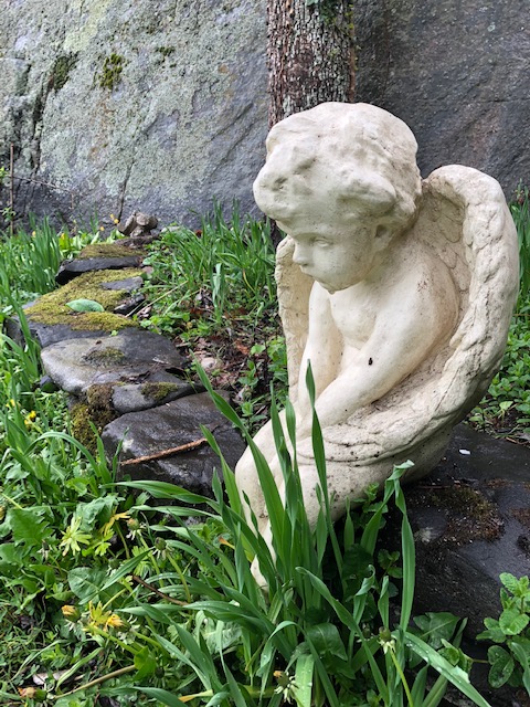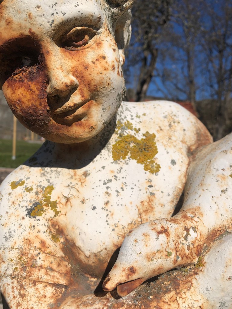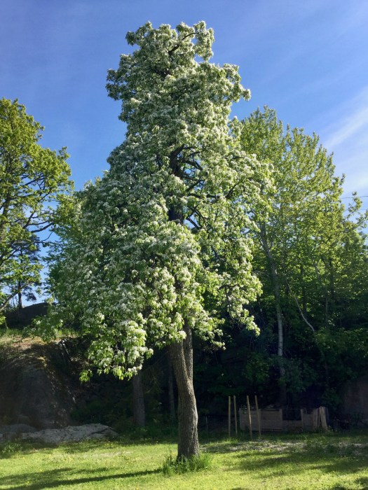 Hun og han som hadde passet på hagen før vi fant den. Hun var modist. Han? Vet ikke, men han må ha elsket hagen. De var ikke rike, huset gikk for lut og kaldt vann, men hagen, alt de kunne gjøre der som ikke kostet for mye penger gjorde de. Plantet trær, flyttet stein, delte daglilje og hosta og peoner, passet bærbusker og frukttrær, holdt bekken åpen, ryddet skog. De var her hele sommeren. Til hun døde og han ble for gammel. Orket ikke mer. Våren 2018, da frukttrærne blomstret som ingen levende i landet hadde sett det før, synes jeg at jeg så dem. Hun, modisten, glassepletreet ved berget, han, det krokete pæretreet med et linerlerede inne i hulrommet i stammen. De to. Nesten sammen.
