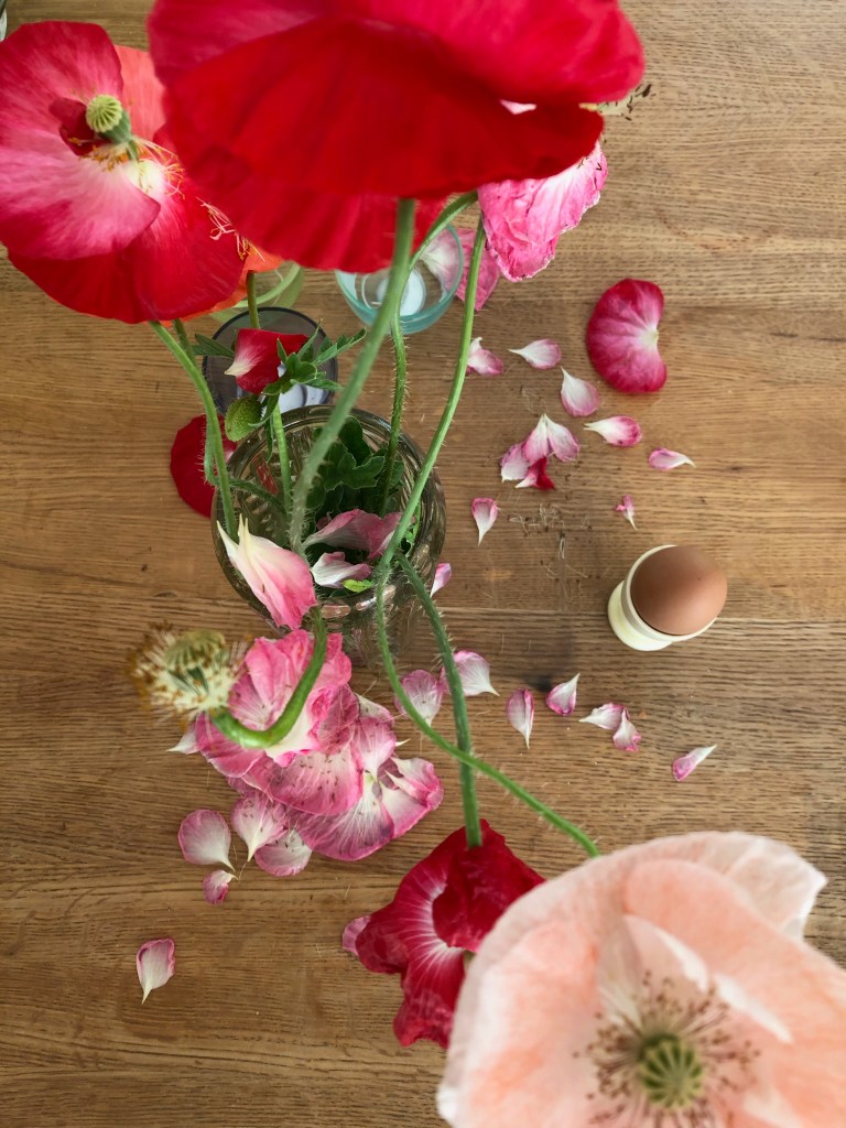 kanskje uværet er over nå. Kanskje blir det varmere snart enn de 12 gradestokken viser. Kanskje skal jeg gå ut og rense rosene for klisne knopper og alt det avblomstra så de blir litt penere og de remonterende kan samle krefter til ny blomstring. Kanskje blir det sommer igjen. Fuglene synger i hvert fall som da sola skinte for en uke siden. Ellers går det som det skal. Kålmøll og kålsommerfugllarver holder fest på det vi gjerne skulle holdt fest på om en måneds tid eller to. Rødbeter og gulrøtter er tynna, men står sikkert for tett fremdeles. Jeg har så vondt for å rive planter ut av jorda. Lover meg selv at jeg skal plukke og spise halvstore røtter underveis så de som skal lagres får bedre plass enn de har nå. Ugraset trives overmåte. Selvsådd ringblomst, ruccola, koriander, valmuer og kornblomst røver til seg plass i åkeren. Vondt for rive opp dem også enda det er tydelig de tar for seg av lys og luft og næring så det jeg sådde kommer til kortere enn det kunne ha kommet. Jeg visste det jo da jeg lot dem stå for noen uker siden, men … Neste år. Da skal jeg være mindre bløthjerta. Da skal de opp før de tar over.