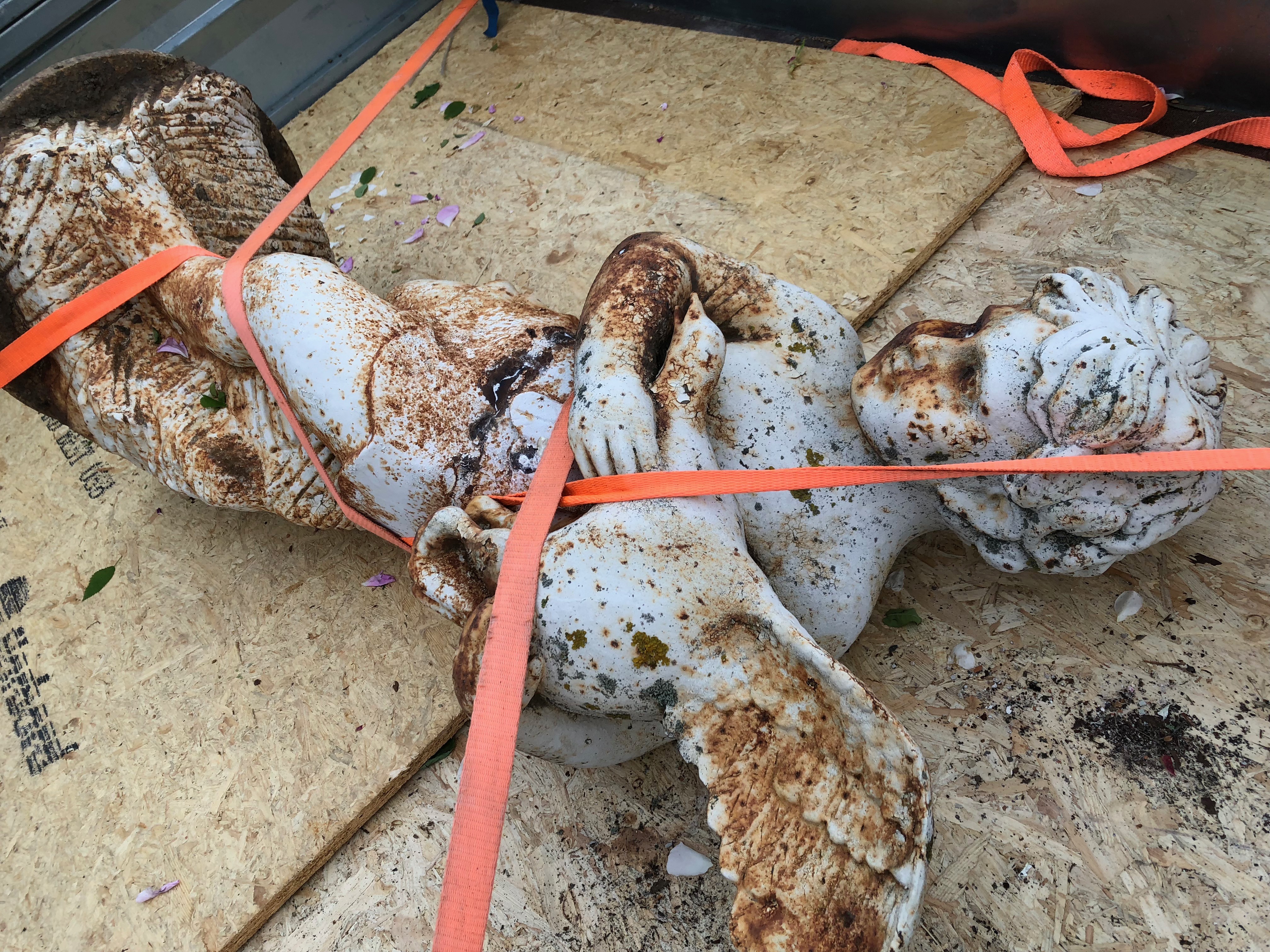 Han sto for seg selv, helt i utkanten, alene. Bare det er jo noe en melankoliker kan falle for. Men jeg tror han kunne stått hvor som helst. Vi ville sett ham. Rusten og fin. Små flak av grå og gul lav rundt omkring. Det ene øyet ser ut som om det er blindt, så vi stroppet ham fast på hengeren og tok ham med hjem.
