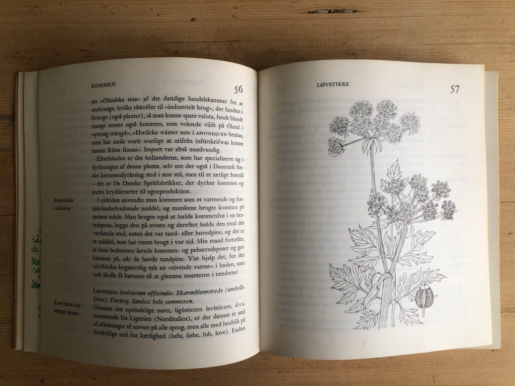 1973. Det er noen år siden. Navnet mitt og årstallet ved siden med barnslige bokstaver. Den aller første boka om planter jeg gikk ut og handlet. Det interesserte meg altså allerede da, vekster og hage. Om enn beskjedent. Nå er jeg eier av et helt bibliotek om roser og gjødsel og stauder og grønnsaker og hagens innredning. Jeg kikker i grunnen bare sjelden i bøkene. Det de har kostet står ikke i forhold til bruken. Det kan jeg ikke bry meg om. Jeg ville og vil ha dem. Jeg vil kaste et blikk på bokryggene i forbifarten og vite at jeg har dem. I tilfellet. Jeg vil ha muligheten til å slå opp på en side, tilfeldig eller på leting etter informasjon om ett og annet jeg lurer på. Sjelden. Så mye sier seg selv der ute i hagen. Det er jord og fuktighet og frø eller småplanter, det er å holde det åpent omkring dem til de får feste, det er enkelt. Men likevel, ville ikke vært foruten bøkene. De minner meg for eksempel om sommer hele vinteren. De minner om et hav av muligheter. De minner om at det finnes en stor kjærlighet til natur der ute i verden. Det er beroligende i en ellers nokså kaotisk verden. Det er trygt.