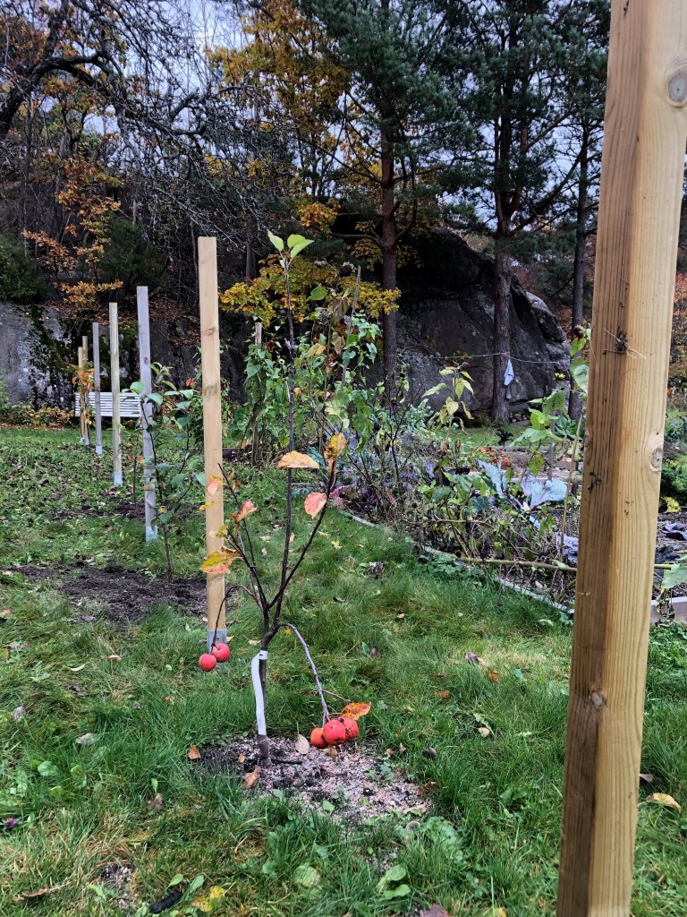 Nå er det 25. september, og til tross for et par dager med storm, det henger masse pærer på trærne fremdeles, men så høyt oppe at vi ikke får tak i dem. Fruktstige? Maybe … Neste år? Kan se ut som de henger så høyt i år at de får henge til de faller ned og slår seg.