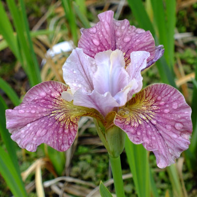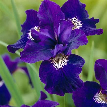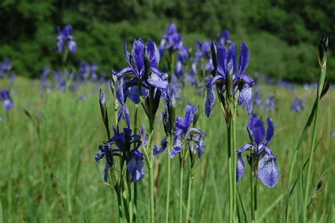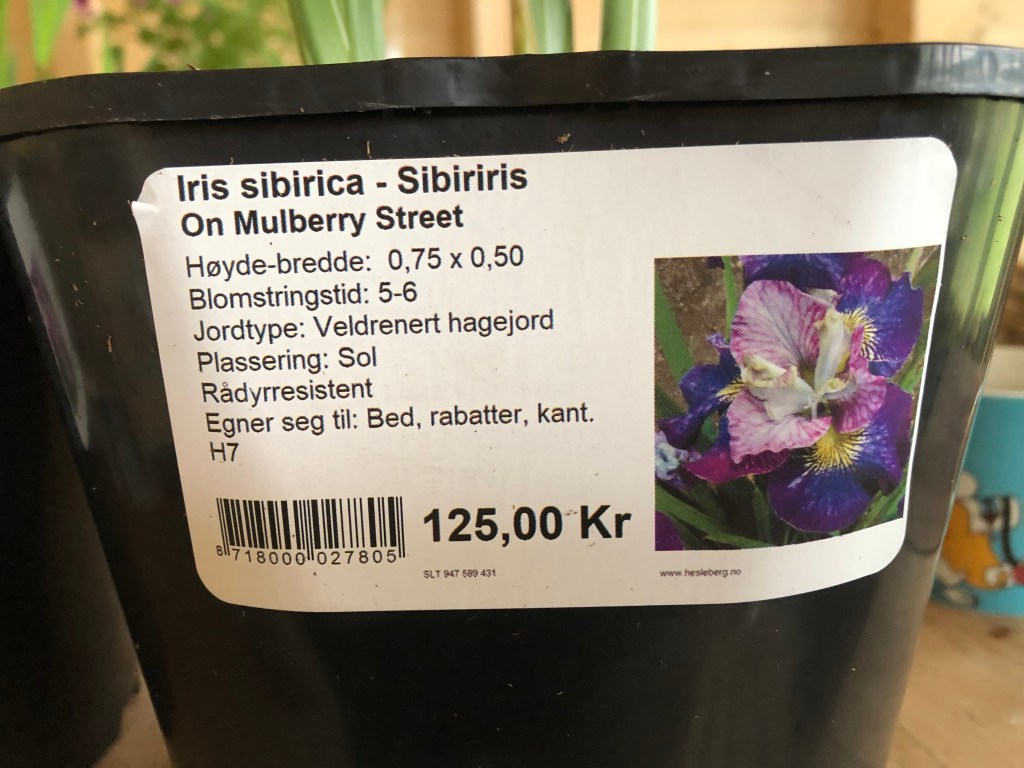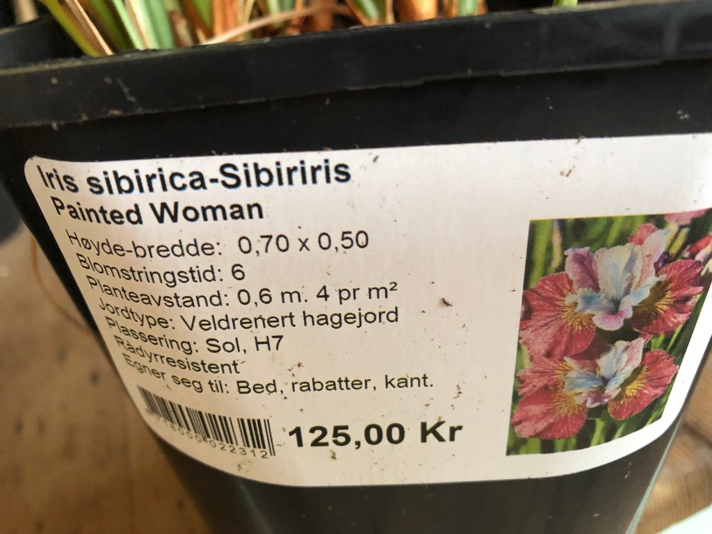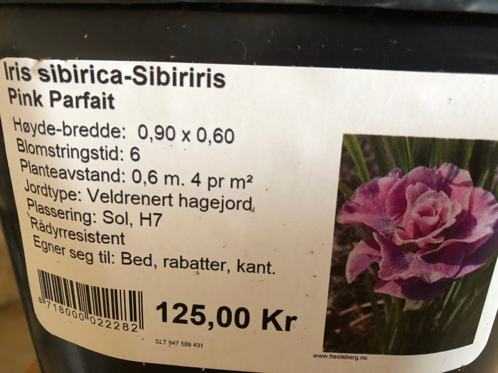 Iris, forskjellige, flest av denne typen med en lupin i bakgrunnen, noen mer blå og noen mer rosa enn disse og en dvergtype som blomstrer tidlig og vakkert og sprer seg fort på det lille bildet.