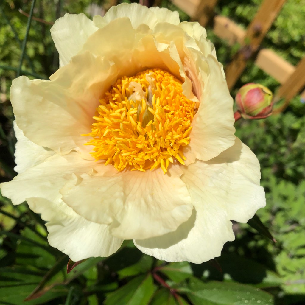 Og hva angår maur og peoner, så er lever de i fredelig sameksistens. Mauren gjør ingen skade på peonens knopper. De har bare i seg litt søtt som det er mer enn nok av og kryper, beruset antagelig, ned igjen.